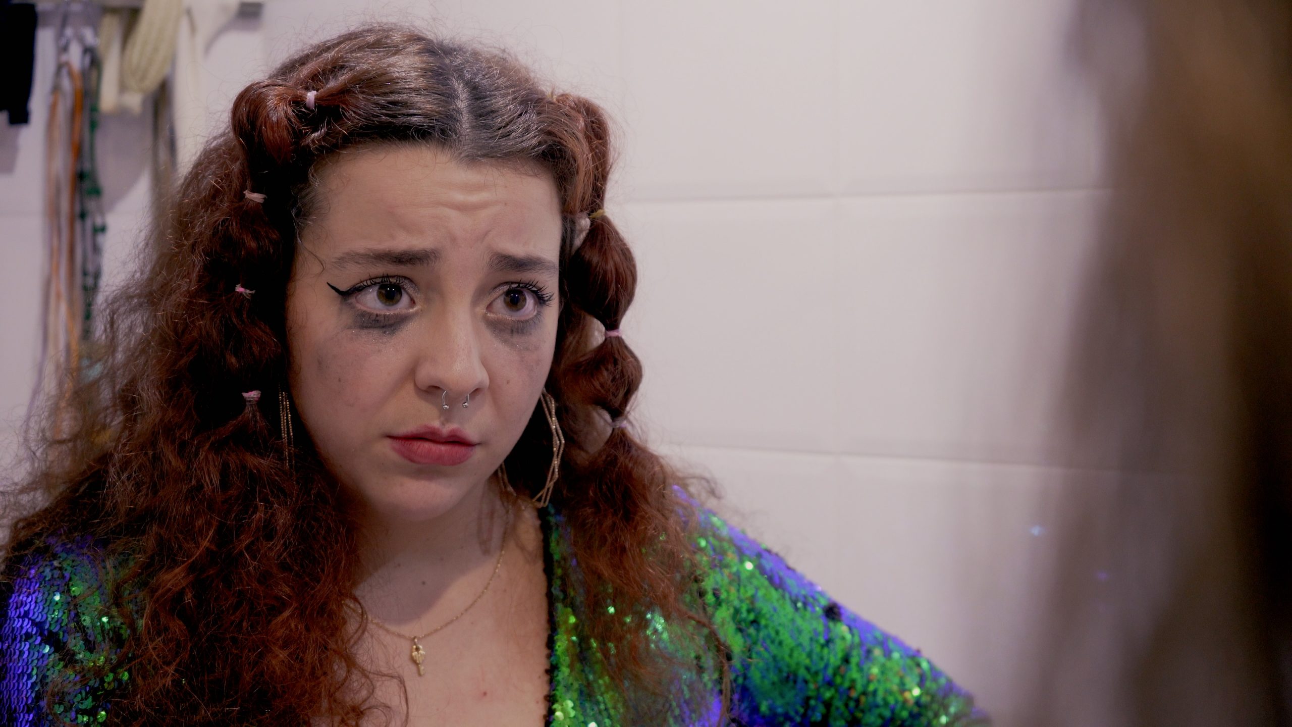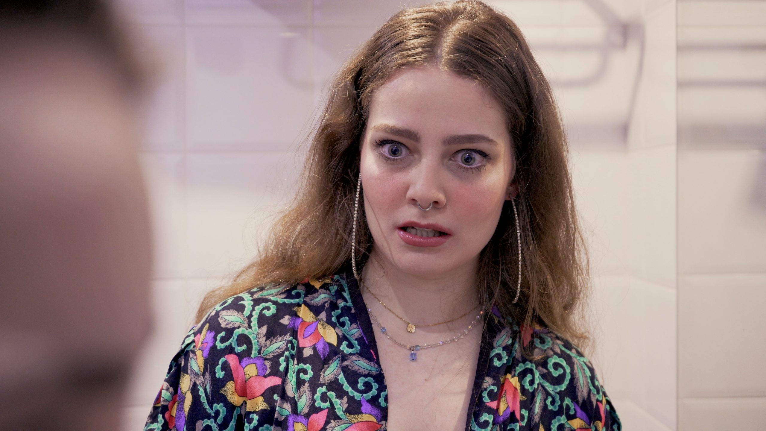 Paula y Lucía reflexionan sobre hombres, relaciones abiertas, regalos de cumpleaños de mierda y lo divino y lo humano en el baño de su piso de estudiantes después de una noche de fiesta.